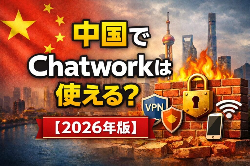 特に日本発のビジネスチャットとして利用の多いChatwork(チャットワーク/運営:株式会社kubell)は、連絡の要となるツールです。しかし2026年現在、中国本土のインターネット規制(金盾/グレートファイアウォール)は高度化しており、対策なしでは「昨日は使えたのに今日は重い」といった事態が起こり得ます。